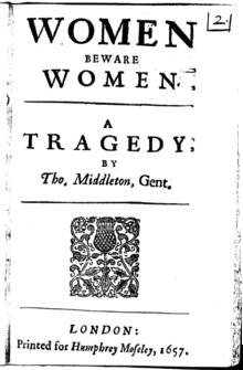 Women Beware Women is a Jacobean tragedy written by Thomas Middleton, and first published in 1657.