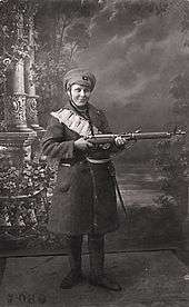 The history of women in the Finnish military is, however, far longer than just since 1995. During the Finnish Civil War, the Reds had several Naiskaarti (Women's Guard) units made of voluntary 16- to 35-year-old women, who were given rudimentary military training. The reactions on women in military were ambivalent during the Civil War. The fighting women of the Reds were shunned in the White propaganda but in the Red side propaganda they were admired and also compared to the "amazons of old".[6] The White side founded their own female organization, Lotta Svärd in November 1918. While the Lottas were not front line fighting units per sé, as a paramilitary organization they handled several important second-line duties freeing men to the actual fighting service. A voluntary Lotta unit manned a searchlight battery of Finnish anti-aircraft artillery in defense of Helsinki in 1944.[7] After the Continuation War, Lotta Svärd was declared a "paramilitary organization" and absolved in 1944.[8]