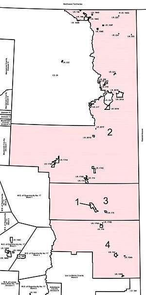 | Wood Buffalo and surrounding wards (click to enlarge) |