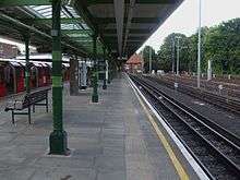 The main western entrance is located off The Broadway[8] with access to the station car park. The eastern entrance is located on Snakes Lane East.[8] This entrance is closed after 21:00 and intercom is used to ask staff to unlock the gates at other times if necessary.[9] The ticket office on that entrance is also no longer in use. There are 3 platforms, one side and one island platform.