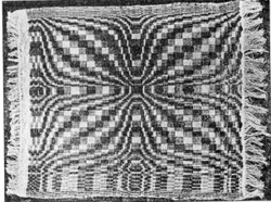 Summer-winter coverlets were reversible, and the summer-winter term refers to the structure not the color. The summer-winter coverlet should not be confused with double weave and is more closely related to overshot. Like double weave, it is dark on one side and light on the other but there is only one layer of cloth, therefore it is much lighter in mass and thickness.