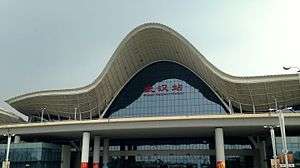 Wuhan Railway Station (Chinese: 武汉站) is one of the three main passenger railway stations of Wuhan, the capital of China's Hubei Province. It is located northeast of Wuhan's East Lake, near a small lake called Yangchunhu, and is adjacent to the 3rd Ring Road. Administratively, the site is within the Wuhan's Hongshan District.