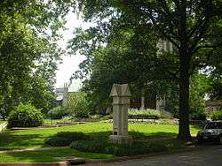 Memorial Presbyterian Church (foreground) and the Missouri Historical Society (aft, in a former synagogue) are both located in the small neighborhood of Wydown/Skinker. | |
