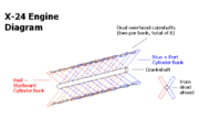 The X-24 is one of the few configurations of X-type engines known to have been produced. The design consists of a pairing of V-12s joined to a common crankshaft, which is lighter than the similar W-block or H-block designs, which require two crankshafts. However, none of the existing X-24 engines was particularly successful; few saw service, and their production lifetimes were very limited. Postwar developments of the turbojet and turbofan engines apparently obviated the need for large aircraft engines of this type.
