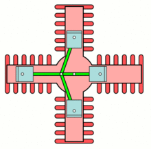 An X engine is a piston engine comprising twinned V-block engines horizontally opposed to each other. Thus, the cylinders are arranged in four banks, driving a common crankshaft. Viewed head-on, this would appear as an X. X engines were often coupled engines derived from existing powerplants.