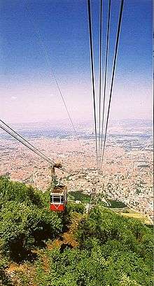 The Bursa Uludağ Aerial Lift, (Turkish: Teleferik, pictured to the right) is an aerial lift line serving Mt. Uludağ. Built initially by the Swiss company Von Roll Holding and opened on 29 October 1963, the aerial tramway was replaced in 2013 by a modern and much bigger capacity gondola lift system of Leitner Group from Italy.[3]