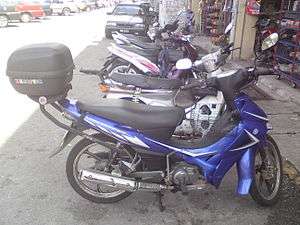 Lagenda 110cc - (2003-2005) The Lagenda 110cc was simply the SR Lagenda with increased engine displacement. However, a few changes have been to the model, such as a more rigid chassis with slightly longer wheelbase and a more straight inlet tract from the carburetor to the inlet manifold, reducing the "puddling" effect. The moped is sold at RM4,388 for the kick-start version and RM4,688 for the electric version. In motor sports, the Lagenda 110 has gained a very good reputation as a racing machine because the bike had won almost all podium position for every rounds during the Malaysian Cub Prix.