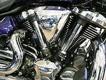 The 1,854 cc (113.1 cubic inches) four-stroke air-cooled V-twin engine was purpose-built to deliver maximum torque at 2,500 rpm in the 55 to 75 mph (90 to 120 km/h) range used for motorcycle cruising. Set at 48 degrees, the cylinders have a four pushrod valves, twin spark plug cylinder heads,[3] with forged pistons having an Alumite coating to reduce friction and ceramic-composite-coated cylinders.[2]