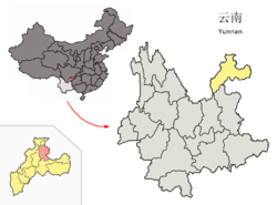 ![]() Location of Yanjin County (pink) and Zhaotong Prefecture (yellow) within Yunnan province of China | |