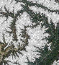 - ↑ The falls can be seen more clearly in an IKONOS image from here taken May 9, 2000, which is oriented with south up.