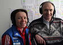 Yevgeniya Vladimirovna Medvedeva-Arbuzova (Russian: Евге́ния Влади́мировна Медве́дева-Арбу́зова; born 4 July 1976 in Kondopoga, Karelian ASSR) is a Russian cross-country skier who has competed since 1996. Competing in two Winter Olympics, she won two medals at Turin in 2006 with a gold in the 4 x 5 km and a bronze in the 7.5 km + 7.5 km double pursuit.