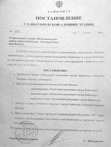 - the official website of the city administration Baikonur - Honorary citizens of Baikonur