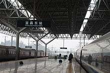 Yichang East Railway Station (simplified Chinese: 宜昌东站; traditional Chinese: 宜昌東站; pinyin: Yíchāng-dōng Zhàn, formerly Huayan Railway Station) is a railway station in Yichang City, Hubei Province, People's Republic of China. It is the junction of two sections of the Huhanrong Passenger Dedicated Line (Shanghai-Hankou-Chengdu): the Hanyi Railway, going east to Hankou (Wuhan), and the Yiwan Railway going west to Lichuan and Wanzhou.