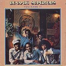 You Name It is the third album by The Dynamic Superiors released on Motown Records in 1976. The album was arranged by Arthur G. Wright, Gene Page, Dale Warren and Mel Bolton. The cover photography was by Anthony Loew.