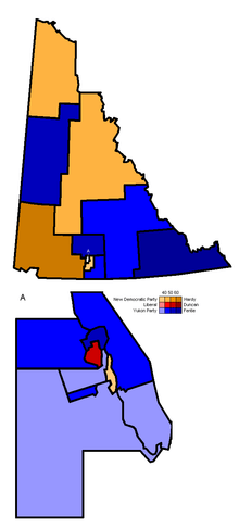| Yukon Party | Dennis Fentie | 18 | 2 | 12 | +500% | 5650 | 40.3% | |