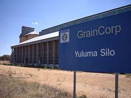 Yuluma is a rural community in the central part of the Riverina and a railway station on The Rock - Oaklands Railway line. The station is situated about 616 rail kilometres from Sydney. It is situated by road, about 7 kilometres (4.3 mi) south west of Boree Creek and 29 kilometres (18 mi) north east of Urana. The railway station was in operation between 1911 and 1975.[1]