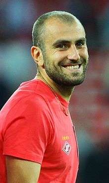 Movsisyan completed a move to Spartak Moscow on 8 December 2012 for a reported €7.5 million and signed a contract for 4.5 years with a salary of €1.5 million a year.[11] He is the 7th most expensive transfer in Spartak history.[12] On 10 March 2013, Movsisyan made his debut for the new club in a home game against Terek Grozny. Movsisyan had an immediate impact by scoring a hat-trick, leading to Spartak victory 3-1.[13][14] This was the first hat-trick Movsisyan scored in his career and he became the first Spartak player to score a hat-trick in his debut. His next goal came in a 2:0 home victory over Amkar Perm. Movsisiyan then received an injury in a 2:2 derby against CSKA moscow and missed the next 3 games. At the end of the season his team finished 4th which means they have qualified for the play-off round of the UEFA Europa League. Next season started perfectly for Yura, he scored a goal in the first match of the season from a penalty, in a 2:1 victory over Kryliya Sovetov.