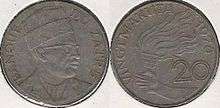 The Zaire (French: Zaïre), was the unit of currency of the Democratic Republic of the Congo and then of the Republic of Zaire from 1967 until 1997. There were two distinct currencies. All but six of the 79 series of banknotes issued bear the image of Mobutu Sese Seko.[1]