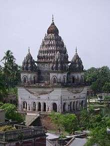 The Puthia Raj family was created by the Mughal Emperors in the early seventeenth century is one of the oldest feudal estates of Bengal. A lord named Nilambar received the title of Raja (King) from the Emperor Jahangir (1605–1627 AD). In 1744, the region was divided between King Nilambar's sons and the Puthia Raj family was born. The family built lavish palaces and temples, such as the Puthia Temple Complex and were noted philanthropists. The Temple Complex consists of a cluster of notable old Hindu temples in Puthia Upazila, Rajshahi Division, Bangladesh. Located 23 km to the east of Rajshahi city it has the largest number of Historic temples in Bangladesh. The temples have been built in terracotta in a variety of styles combining the typical Jor Bangla Architecture with other influences. The Rajbari or Palace of the Raja of Puthia is part of the complex.