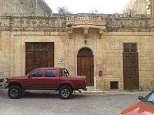 The chapel of St Catherine was already a parish church in 1436, and was the fifth of the eight mother churches on Malta.[19] This chapel stood halfway between Bisqallin and Ħal Bisbut, a distance of half a mile from each village. This medieval chapel remained in use until 1492, when it was rebuilt and enlarged to its present state. This was commemorated by an inscription.[n 3]