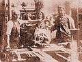 - Zenón with his nephew Octavio, internacional goalkeeper, at the railway's workshop.
