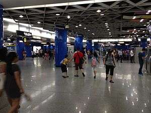 Zhujiang New Town Station (Chinese: 珠江新城站; pinyin: zhūjiāng xīnchéng zhàn; Jyutping: zyu1 gong1 san1 seng4 zaam6) is an interchange metro station on Line 3 and Line 5 of the Guangzhou Metro. It started operations on 28 December 2005 and is located under the junction of Huaxia Road (Chinese: 华夏路) and Huacheng Avenue (Chinese: 花城大道) in Zhujiang New Town, Tianhe District, Guangzhou.[1][2]
