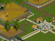 The goal of Zoo Tycoon is to create a thriving zoo by building exhibits to accommodate animals and keeping the guests and animals happy. Exhibit-building is one of the primary goals of Zoo Tycoon. To keep the guests and animals happy, exhibits should be suitable to the animal; for example, a lion is best suited to a savannah environment.[1] Choices in terrain, foliage, rocks, shelters, fences, toys and the presence of zookeepers all contribute to the suitability of an exhibit and the happiness of the animal. Guest happiness is dependent on animal choice, animal happiness, buildings, and scenery. Buildings may include bathrooms, restaurants and food stands, shops, or entertainment buildings such as movie theaters. Scenery involves aesthetics that raise guest happiness slightly, such as topiary art, light posts, or benches. Keeping both animal and guest happiness allows the player to gain monetary awards and steady income. To help manage the expanding zoo, players can employ maintenance workers, zookeepers and tour guides.